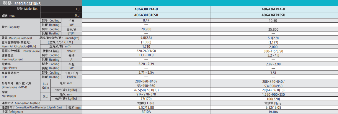 General AUGA30FRTA-U 3.0HP Non Inverter Cooling Only Ceiling Mounted Cassette Split Type Air Conditioner