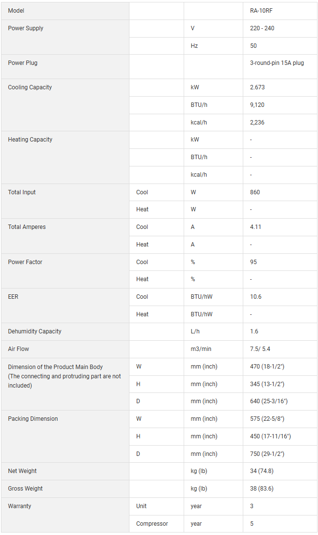 Hitachi RA-10RF 1.0hp Non Inverter Cooling Only Window Type Air Conditioner