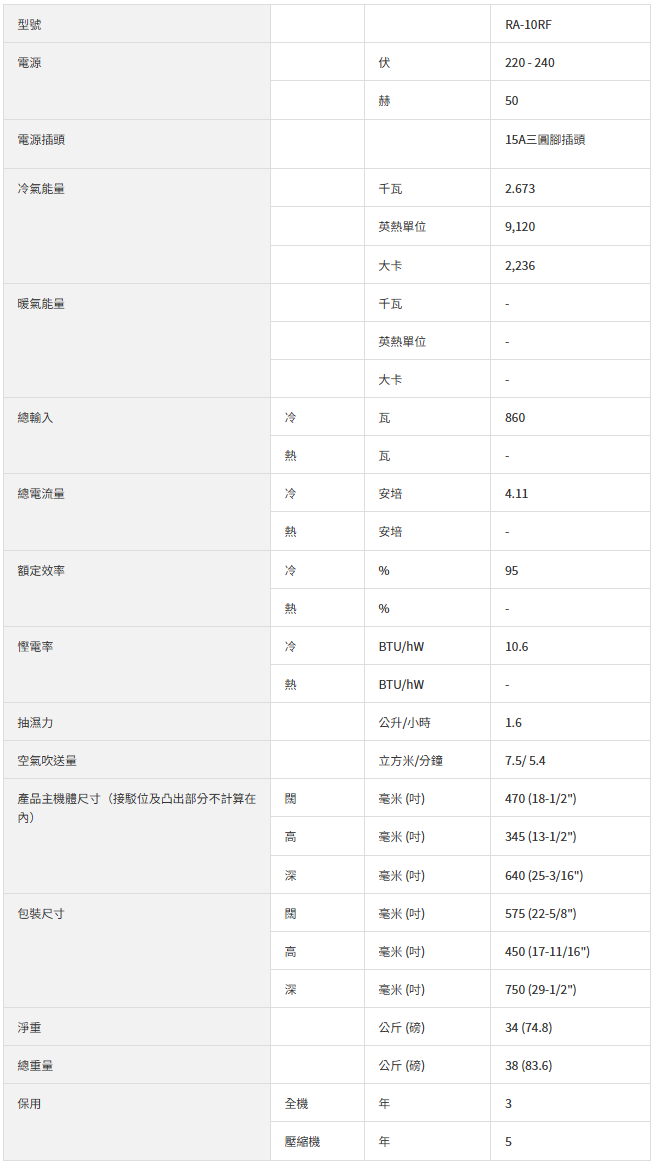 Hitachi 日立 RA-10RF 1.0匹 小涼伴淨冷系列 窗口式冷氣機