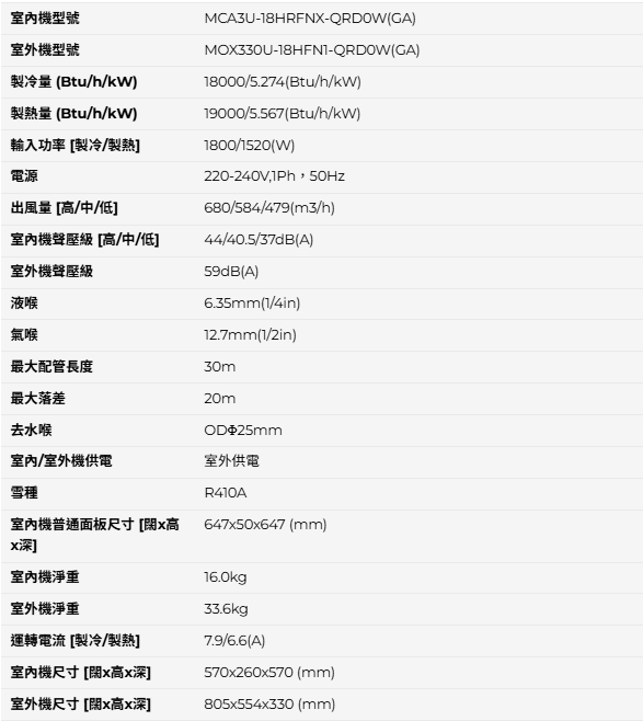 Midea 美的 MCA3U-18HRFNX-QRD0W 2.0匹 變頻冷暖 藏天花卡式分體冷氣機