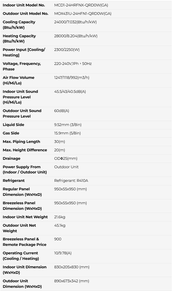Midea MCD1-24HRFNX-QRD0W 3.0HP Inverter Heat Pump Ceiling Mounted Cassette Split Type Air Conditioner