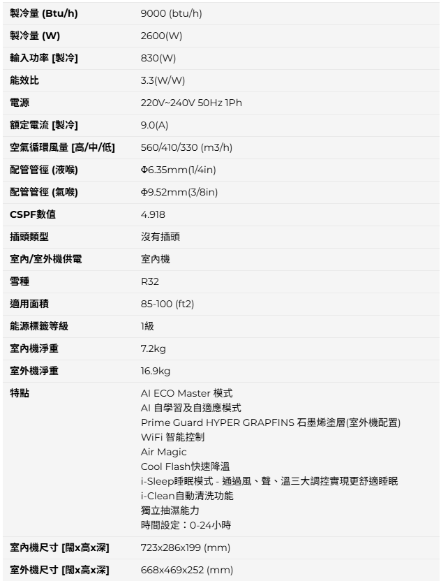 Midea 美的 MS-09CRF8F 1.0匹 numen系列 變頻淨冷 掛牆式分體冷氣機