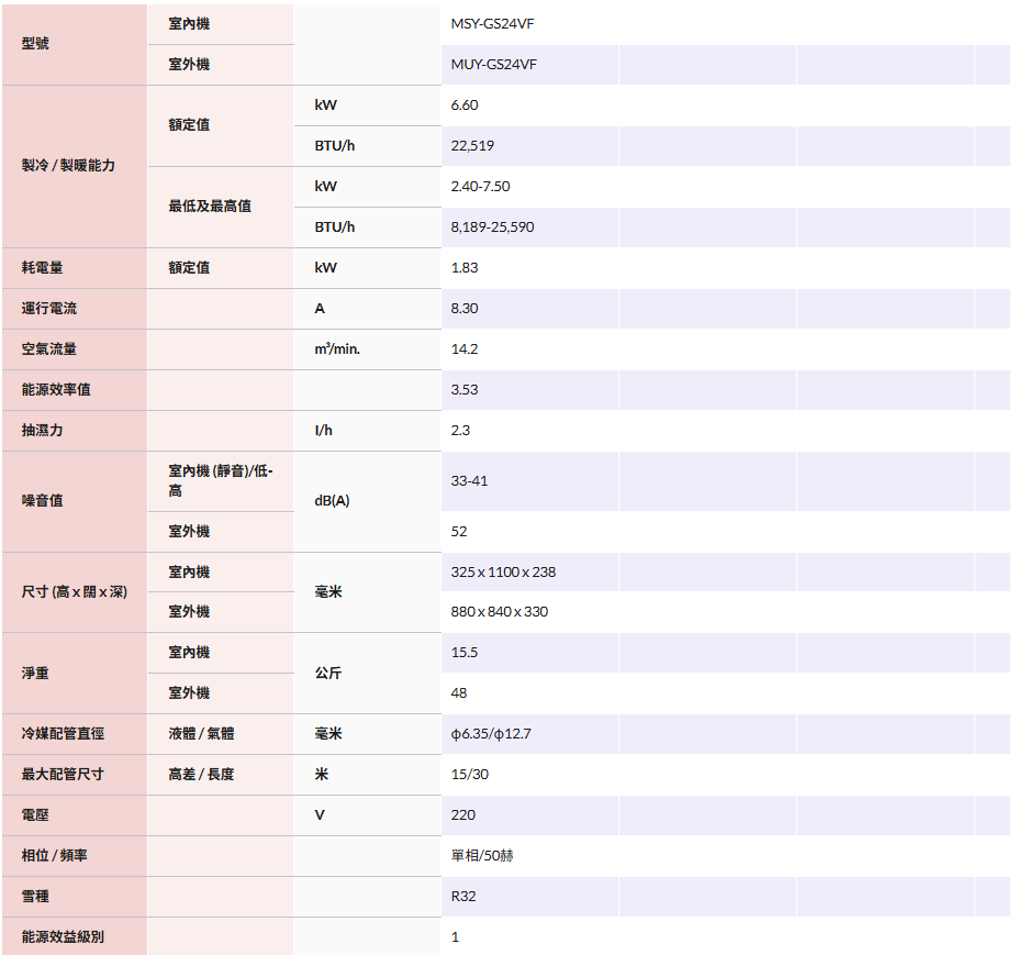 Mitsubishi Electric 三菱電機 MSY-GS24VF 2.5匹 變頻淨冷 掛牆式分體冷氣機
