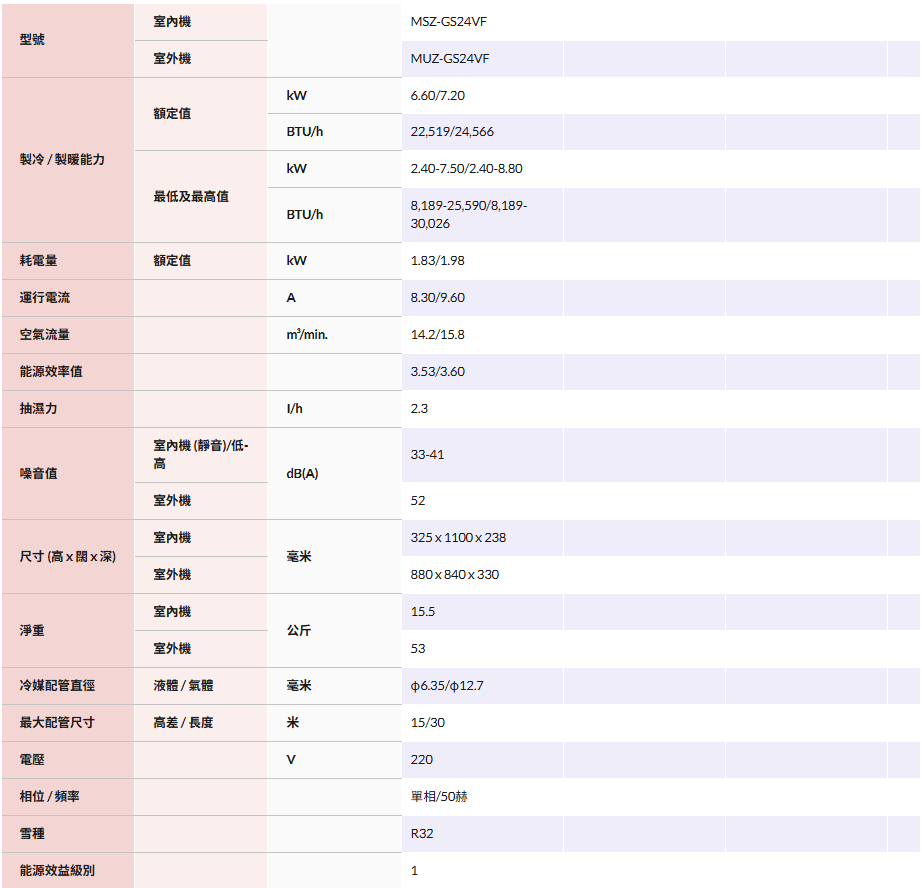 Mitsubishi Electric 三菱電機 MSZ-GS24VF 2.5匹 變頻冷暖 掛牆式分體冷氣機