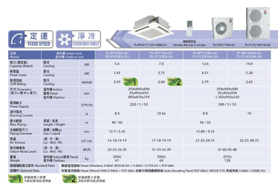 | 型號 | 室內機 | PL-RP50BA-SH | PL-RP71BA-SH | PL-RP125BA-SH | PL-RP140BA-SH | |||