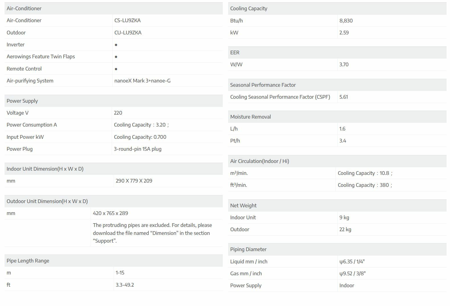 Cooling Capacity : 8,830 Btu/h
