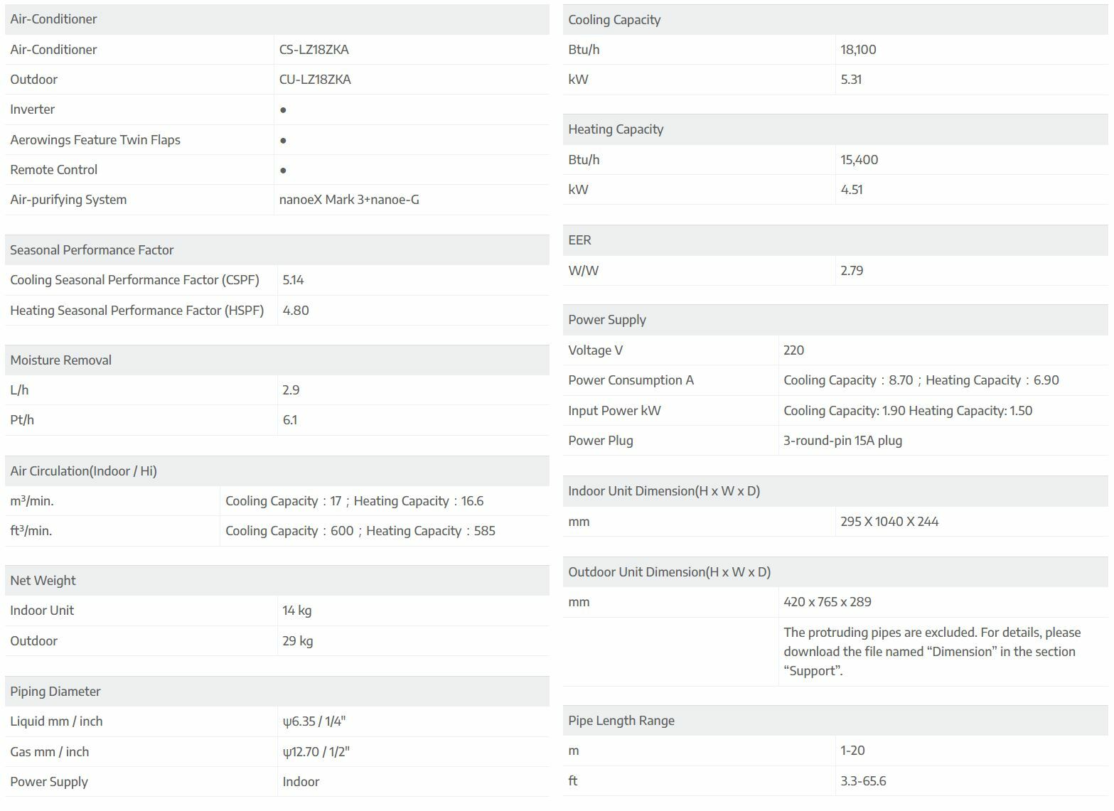 Wifi function, supported with Panasonic Comfort Cloud App(Read More)