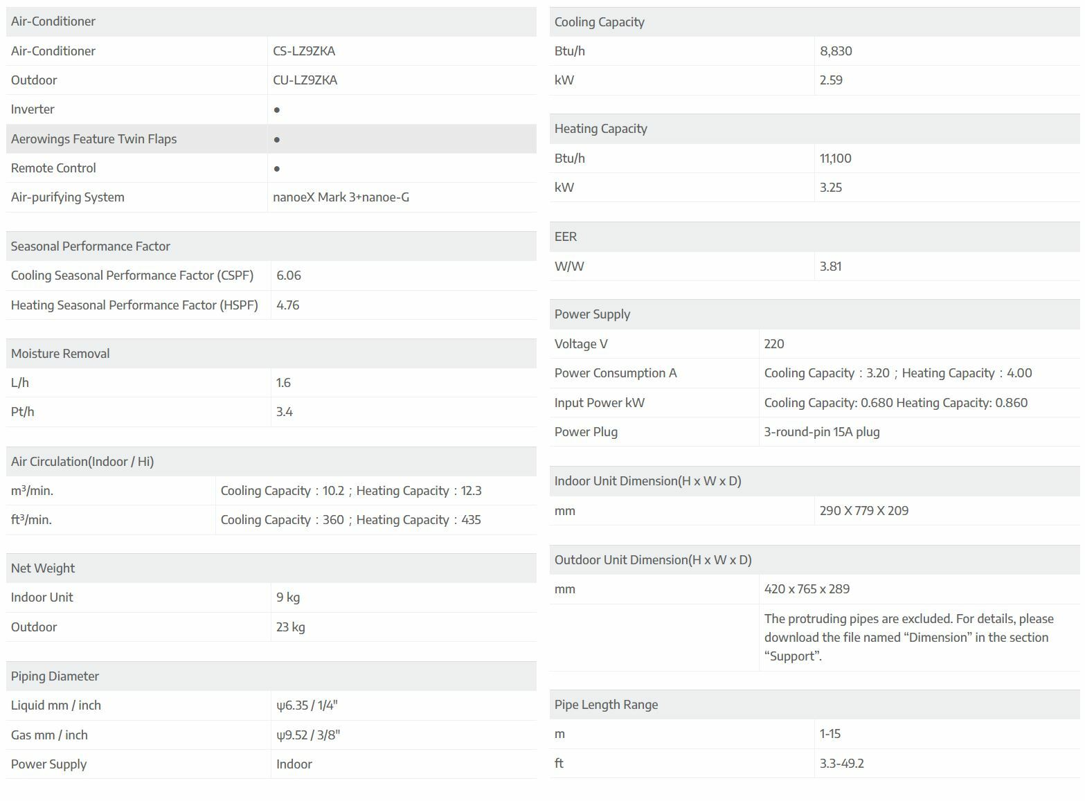 Cooling Capacity : 8,830 Btu/h