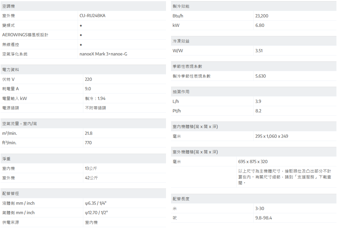 Wi-Fi 功能,支援Panasonic Comfort Cloud 應用程式**