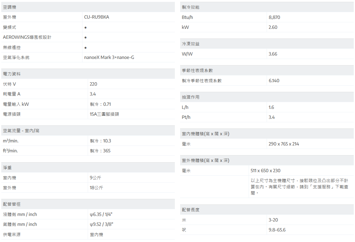 Wi-Fi 功能,支援Panasonic Comfort Cloud 應用程式**