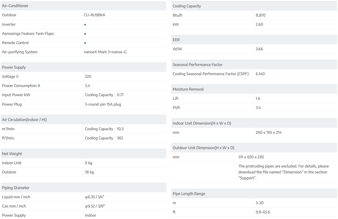 | Gas mm / inch | ψ9.52 / 3/8" | |