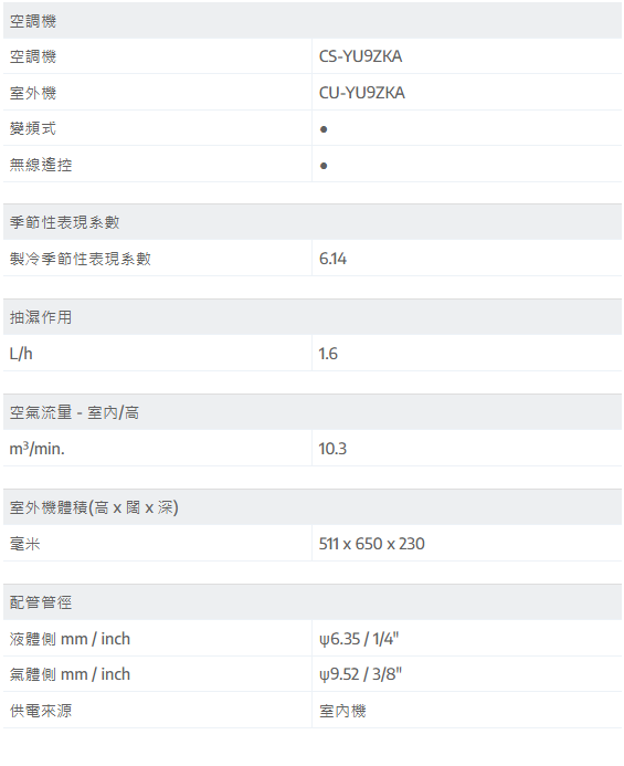 - Wifi 功能, 支援Panasonic Comfort Cloud 應用程式 (需安裝配接器CZ-TACG1)
