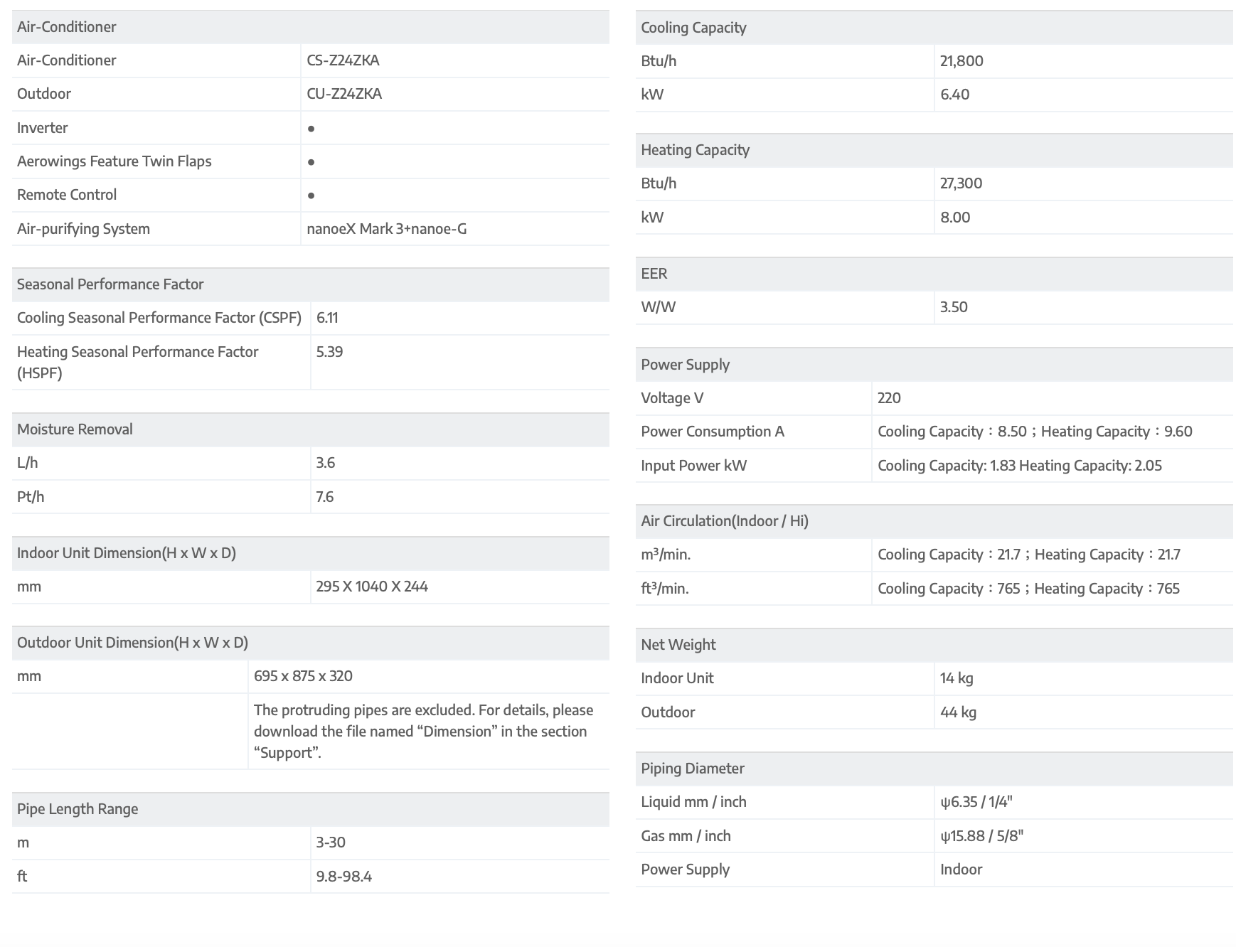 Cooling Capacity: 21,800Btu/h