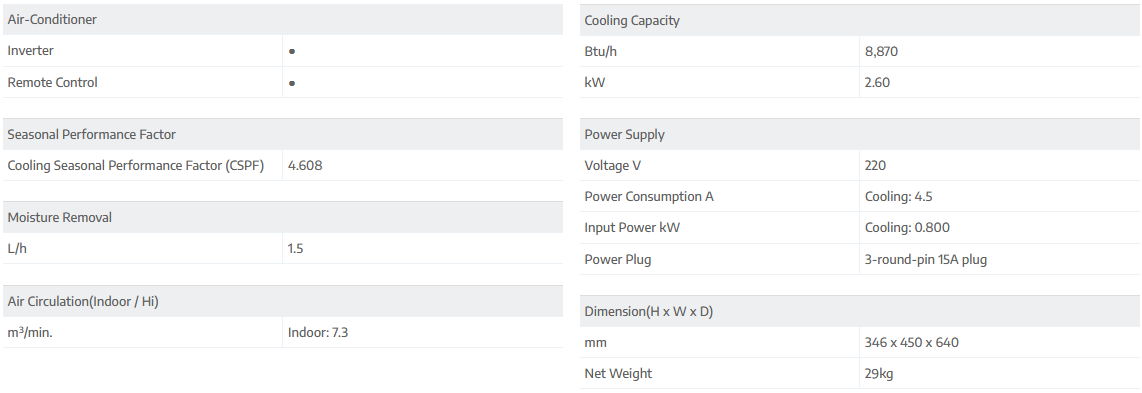"Inverter" type compressor: Silent, Energy saving, Constant temperature