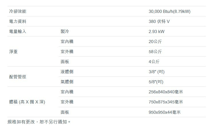 Panasonic 樂聲 S-30PU1H5 3.5匹 定頻淨冷 藏天花卡式分體冷氣機