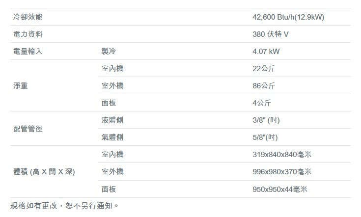 Panasonic 樂聲 S-40PU1H5 5.0匹 定頻淨冷 藏天花卡式分體冷氣機