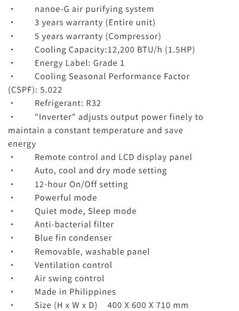 Rasonic RC-HU120A 1.5hp Inverter Ultra Cooling Only Window Type Air Conditioner